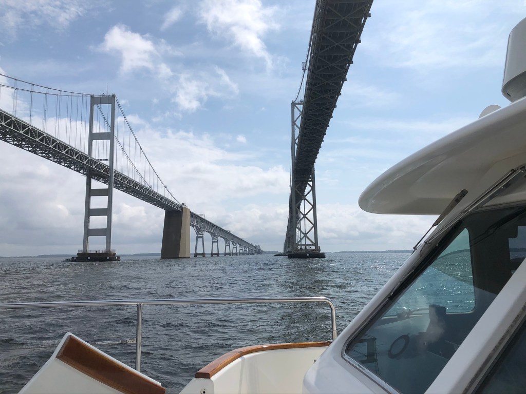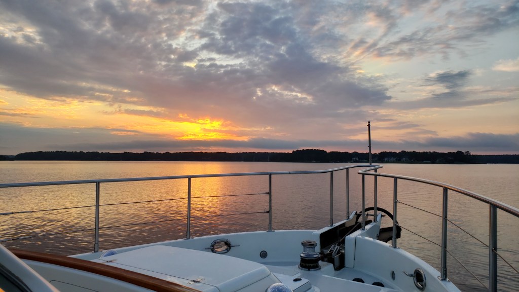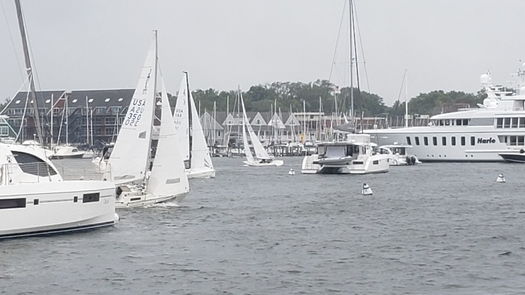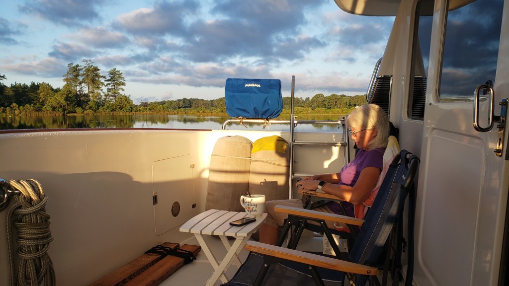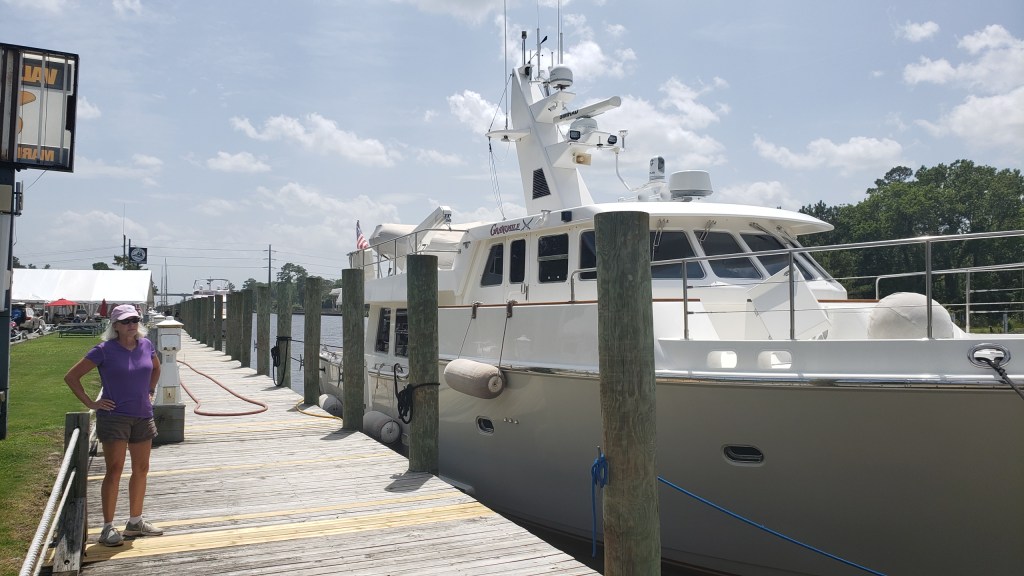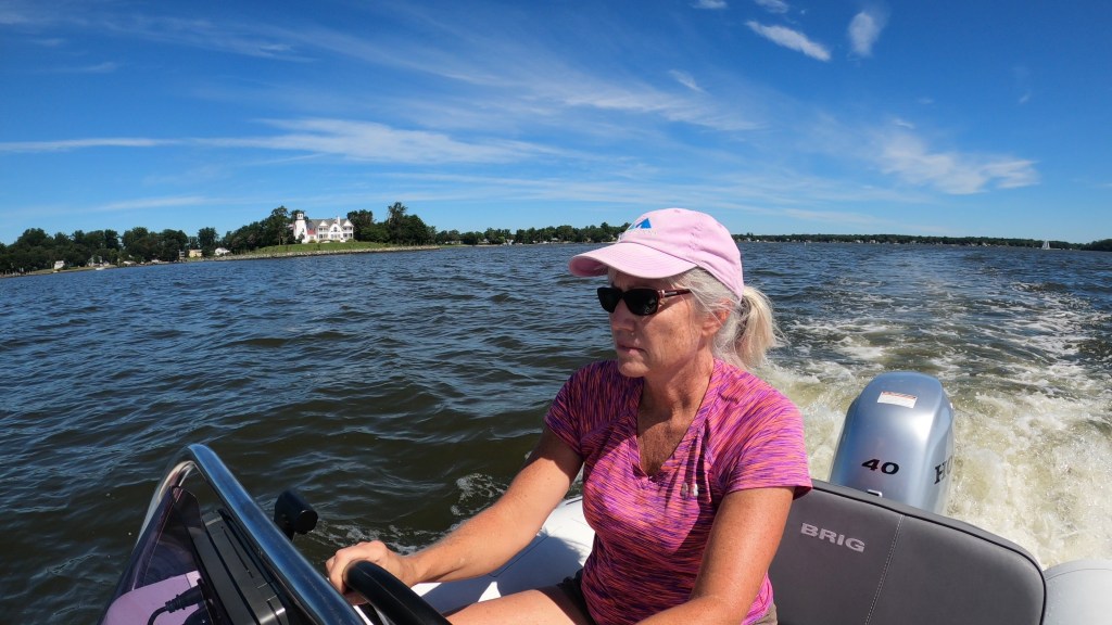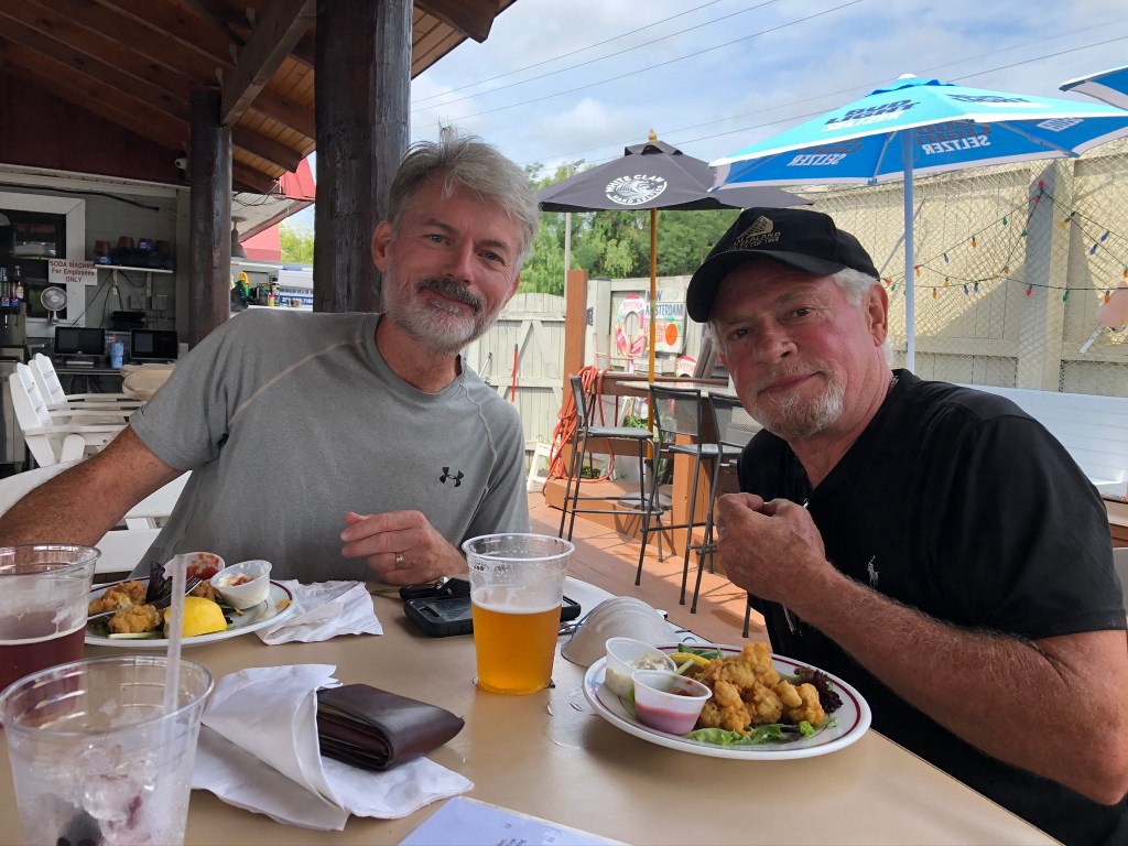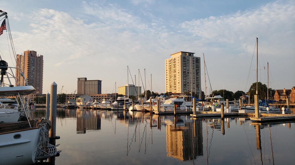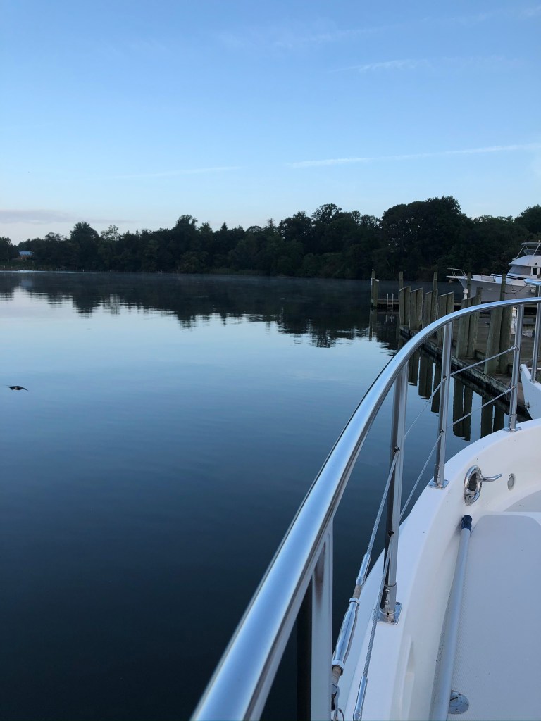 Back to our journey… once we arrived at the marina in Cambridge, we initially tied up to the fuel dock to pump out the holding tank. While undertaking this job, we were hailed by some familiar voices on the dock and saw Frank and Beeb, boating friends we had met in Vero Beach! It was a terrific surprise to be at the same marina, and spent the afternoon with them catching up. After leaving them, we went for a relaxed dinner at a nearby restaurant.