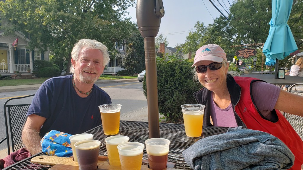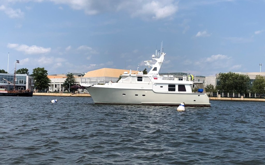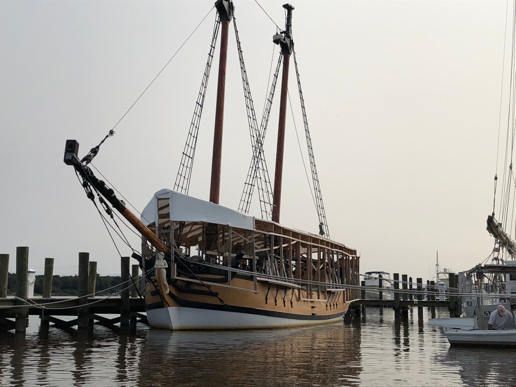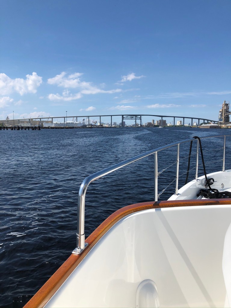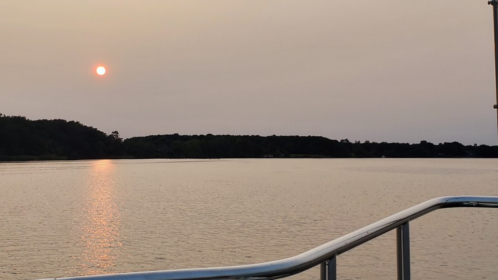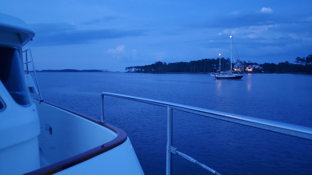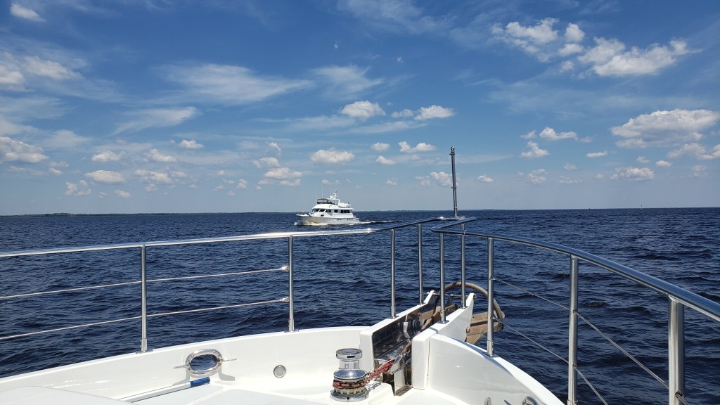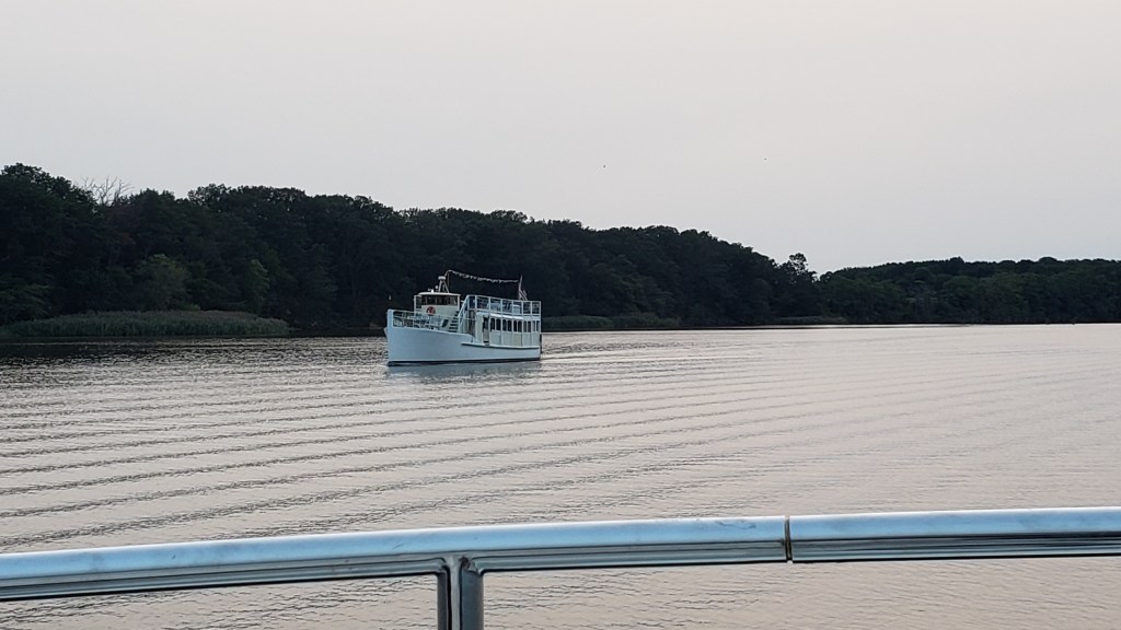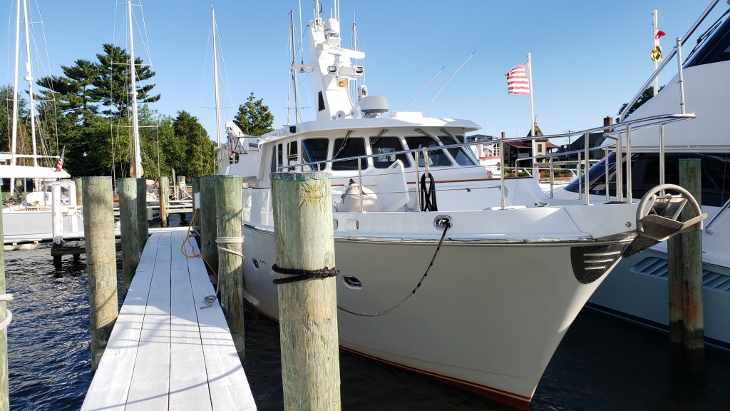 Back to our journey… once we arrived at the marina in Cambridge, we initially tied up to the fuel dock to pump out the holding tank. While undertaking this job, we were hailed by some familiar voices on the dock and saw Frank and Beeb, boating friends we had met in Vero Beach! It was a terrific surprise to be at the same marina, and spent the afternoon with them catching up. After leaving them, we went for a relaxed dinner at a nearby restaurant.
