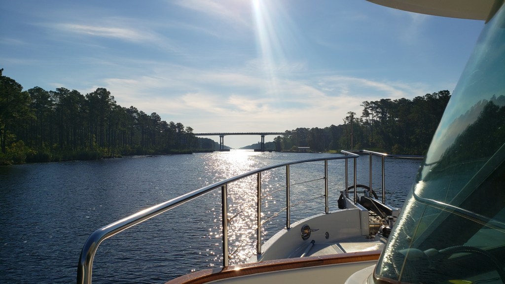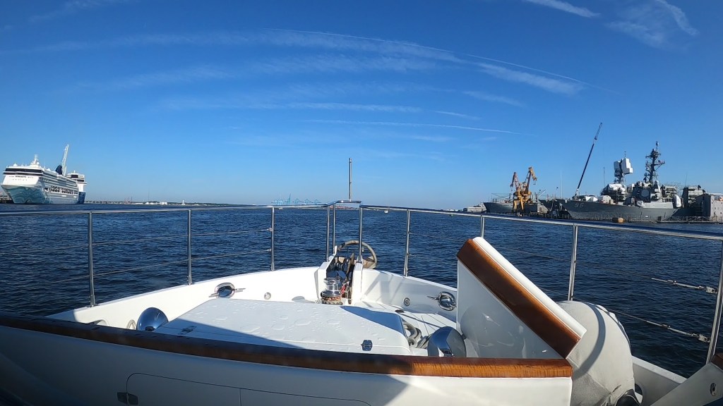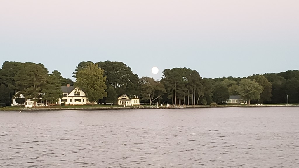 Sunday we were underway by 8:00 am. As we move closer to winter, sunrises are noticeably later, and sunsets frustratingly earlier. Our plan was to travel back to the west coast of the Bay, docking at Calvert Marina in Solomons, MD. The last time we had been here was 30 years ago, visiting a friend stationed at Naval Air Station Pax River. We were looking forward to returning.