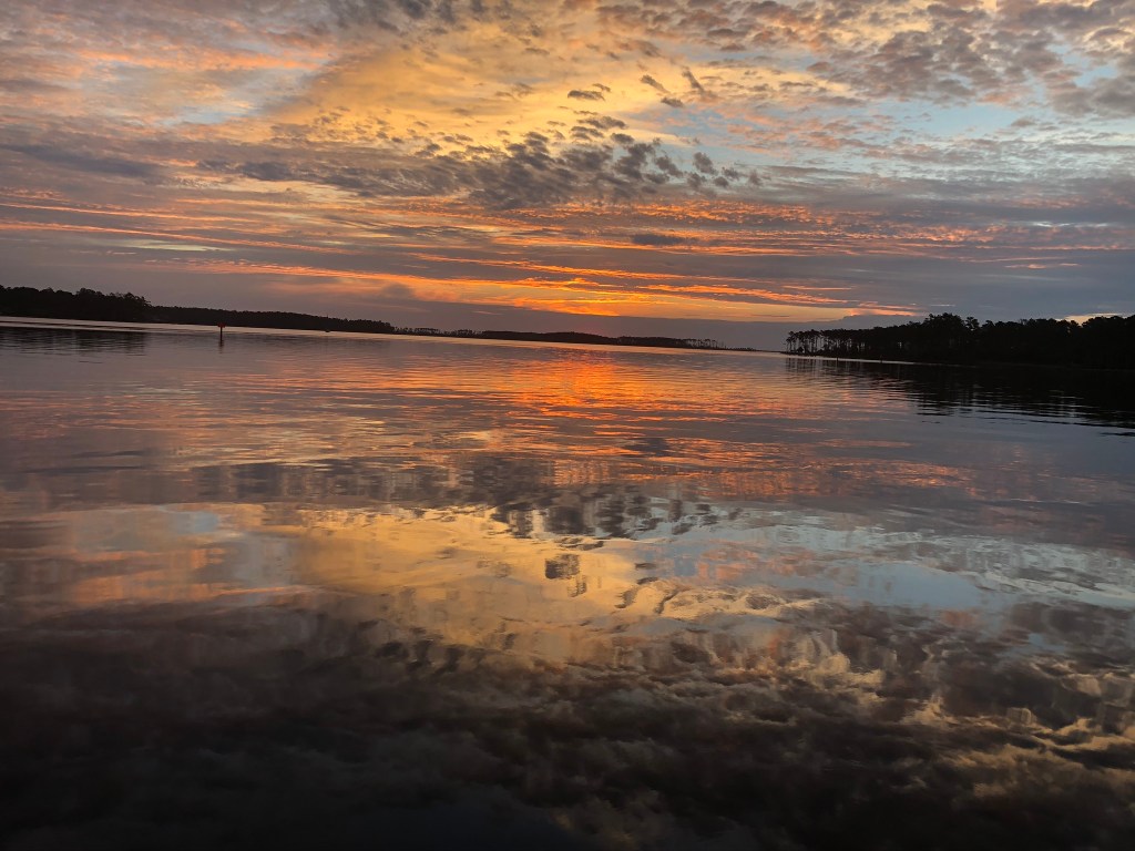 After putting the groceries away, we decided to try our hand at crabbing again, still with our original net. This time, we did have some luck in netting quite a few crabs, but they were all too small to keep. No matter though, it was a fun way to spend the afternoon and we now had groceries, so no fear of running out of sustenance… The sunset that night was spectacular – more so than usual – so, of course, we have pictures…