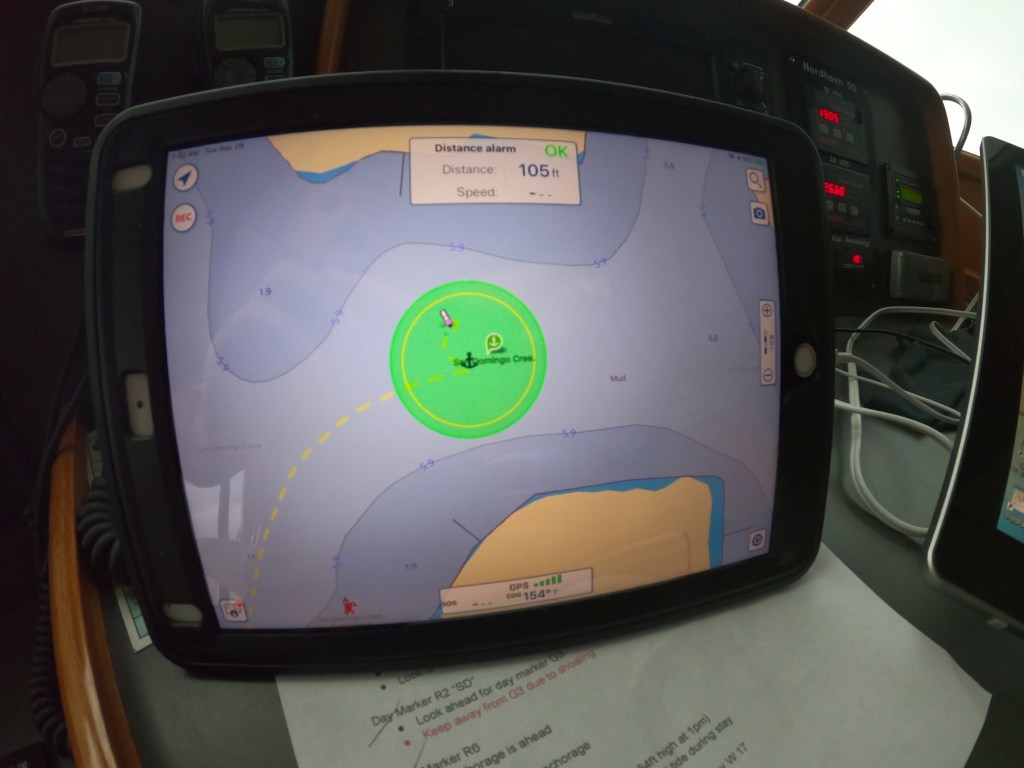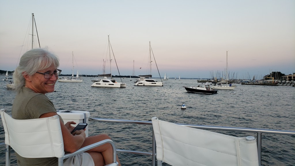 Thursday was much, much better. It started with more frustrations for Neil, as no yards in the area had any time or technicians available to help us diagnose the electronics problem. So we had no choice but to continue working it on our own. After a morning of checking each device one by one, Neil confirmed that the dome radar was causing communication errors on our boat’s electronics system bus leading to other devices such as the autopilot computer and the wind instrument to fail. The root cause appeared to be a slightly unseated cable connector from the dome radar to the system bus. A couple days of testing at the dock was successful but we needed a few days of cruising to know for certain. (As of 10/22, all is good!!)