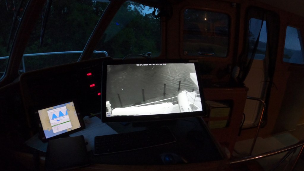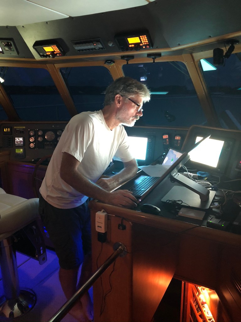 Wednesday was intended to be a rest day, meaning a break from physical labor. Neil spent the entire day working on the electronics issue, with the help of our electronics expert on call in Florida who guided Neil through troubleshooting steps. It was very frustrating and he didn’t make any breakthroughs. Kathleen made a batch of butternut squash soup, and then got knocked low by a wicked headache, so she was out for the day. Definitely not one of our finer days on the boat.