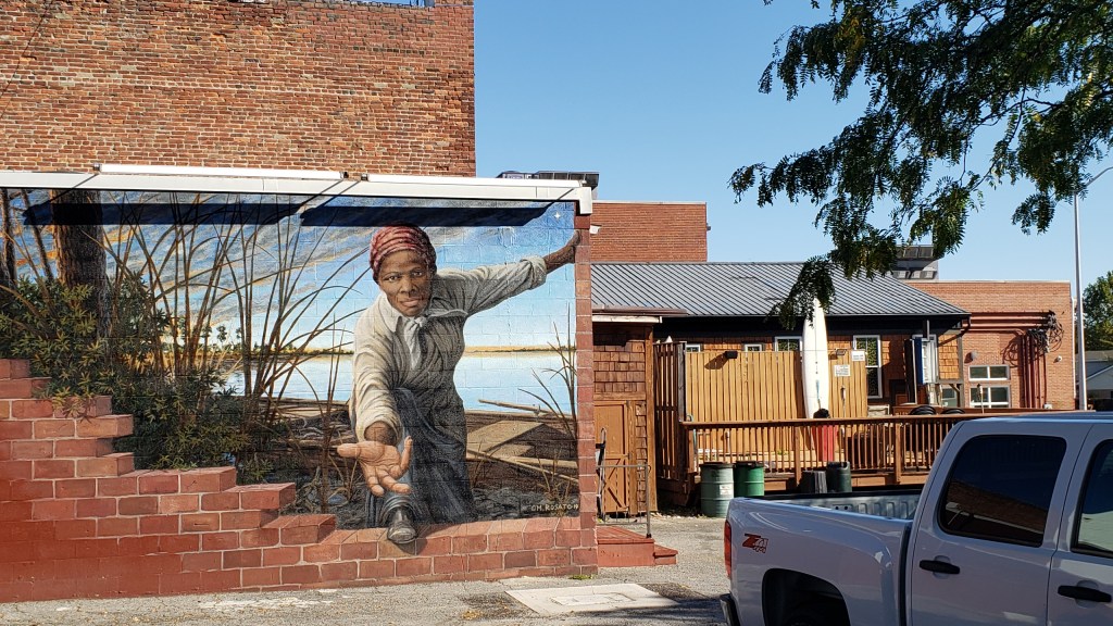 Following what was now becoming a familiar pattern, we downloaded a walking tour of Cambridge and indulged in that for the morning. Cambridge’s most famous resident was Harriet Tubman. There are many buildings that are tangential to her and her work, both positive and negative. It was disturbing to walk across the area where humans were once sold as chattel, today just a quiet space in front of the court house. Amazingly, the building served the same purpose then as it does today, a courthouse. It was also incredible to see places where the underground railroad operated – often very near institutions that upheld slavery. The courage and grit of these past warriors was humbling, as well as intriguing.