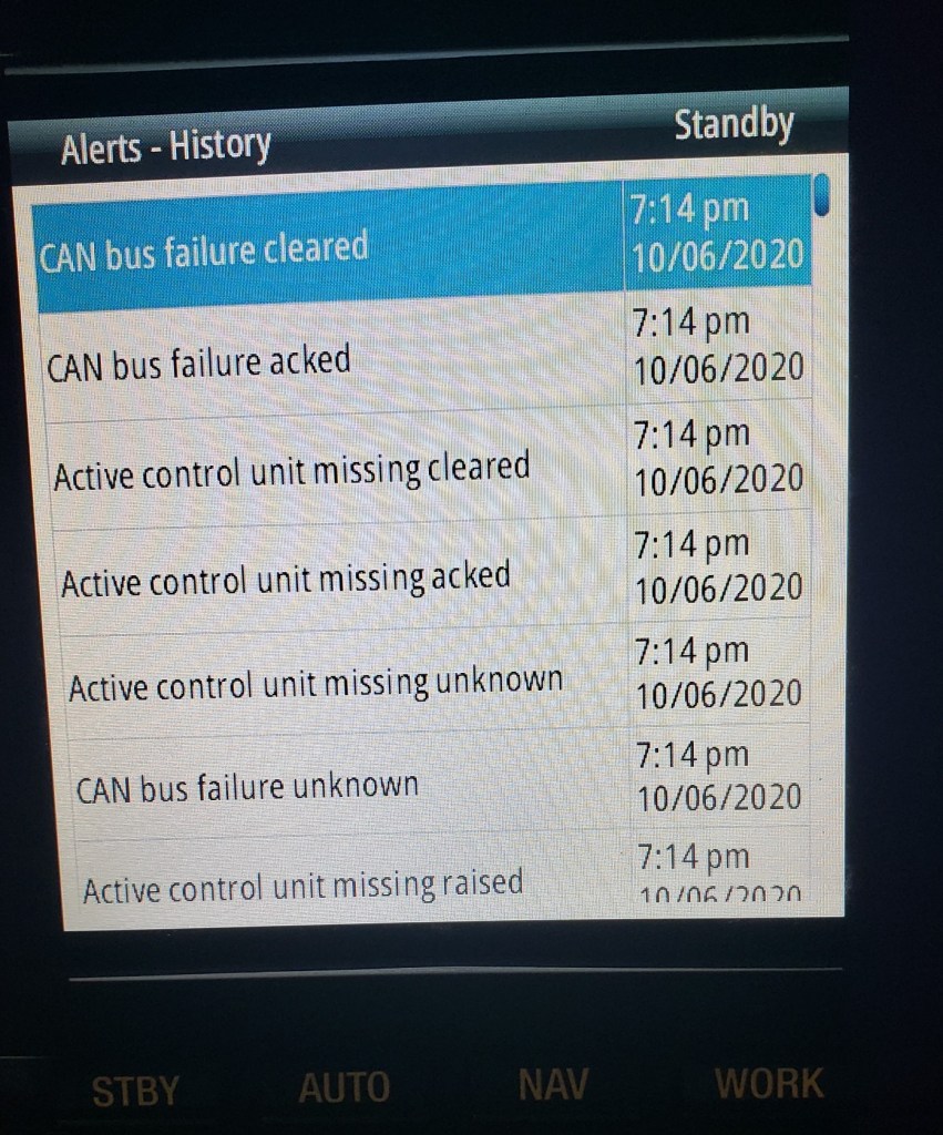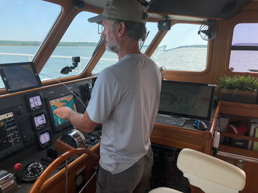 About an hour into a mostly uneventful cruise, the navigation electronics, autopilot, chartplotters and displays, started posting error messages and/or went offline. After three attempts at rebooting the entire system, we determined that the problem was not going to be resolved with a simple hard reboot. We continued the cruise to Solomons with autopilot inactivated, manually steering via the helm wheel and wind speed/direction instrument inoperative.